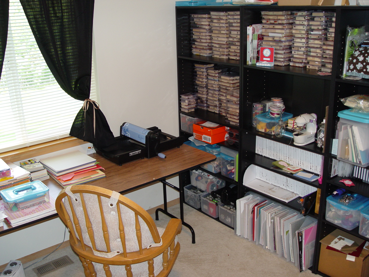 This is also my daughter's room when she is home from college, so I can only show the side I work on. It didn't fit in my sewing studio so since she was at school I made good use of the space. There is a TV on the desk too. It's the next nicest place I like to be.